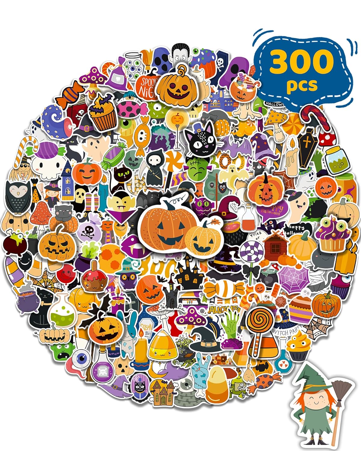 - 300 PCS HALLOWEEN STICKERS:300 pieces unique stickers includes pumpkins,spiders, bats, ghosts, witch hats, kittens,moons and skulls. It also contains varieties of pumpkin stickers to fulfill all of your Halloween decorating needs. No duplicates and no random delivery, the patterns shown…