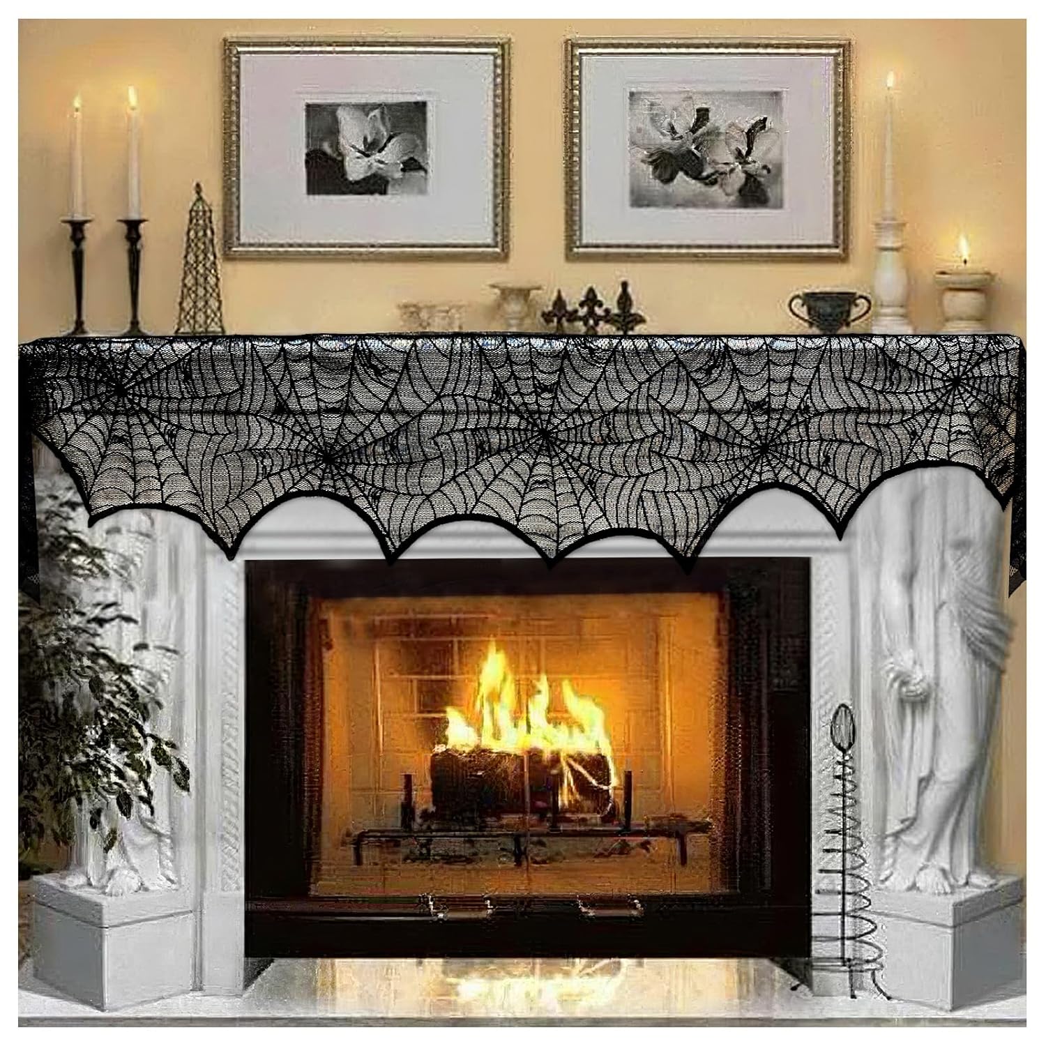 8 reviews for AerWo Halloween Decoration Black Lace Spiderweb Fireplace Mantle Scarf Cover Festive Party Supplies 45 X 243cm 18 x 96 inch